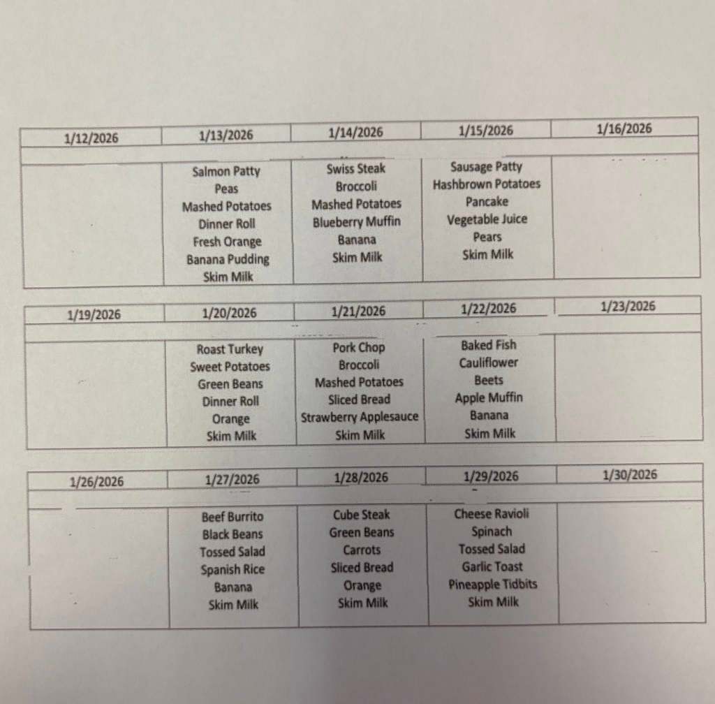 January Lunch Menu: